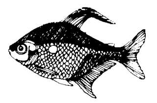 Characoids will eat a large variety of food. Many of the prepared foods on the market will maintain them in excellent condition. Live foods like brine shrimp and tubifex worms are a must to bring them into spawning condition. Characoids are fast feeders, but you should never feed them more than they can consume in 2 or 3 minutes. It's far healthier to feed them smaller amounts more frequently. Remember: uneaten food easily pollutes an aquarium, and no filter can solve an overfeeding problem. Characoids are schooling fish, so never tank them singularly. They will not thrive or reach their full potential in an aquarium without members of their own species. Groups of four or preferably six are recommended. The characoids are always in demand because of their brilliant coloration, diversity of shape, and undemanding ways, and the fact that they can live in groups without conflict. There are over 60 varieties of tetras and their kin. Ask your dealer for some of the more unusual or less common varieties. These can add interest to your aquarium, and might just be the fish you've been looking for!